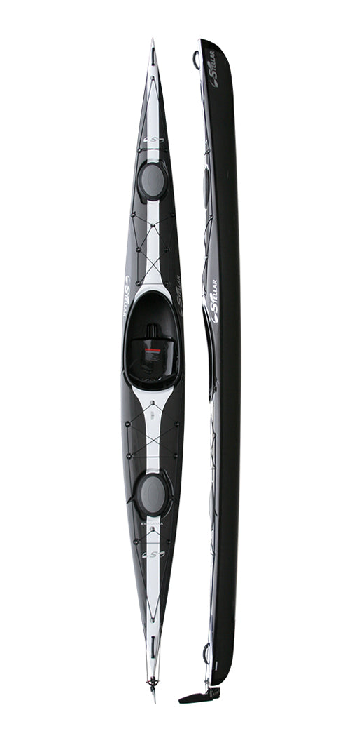 S18R G2 The redesigned Stellar S18' Racer touring kayak (S18R G2) is not your average kayak. Owning many ultra-distance course records, this paddling machine has been further refined - be prepared to be blown away. A tighter catch, streamlined carbon handles and a refined hull shape make this boat as fast as it looks. 3-point footbrace ensures a powerful leg drive. Stability of the G2 will be similar to the G1. Waterline beam still conforms to USCA Sea Kayak division. These refinements make this a boat you need to put in your fleet.