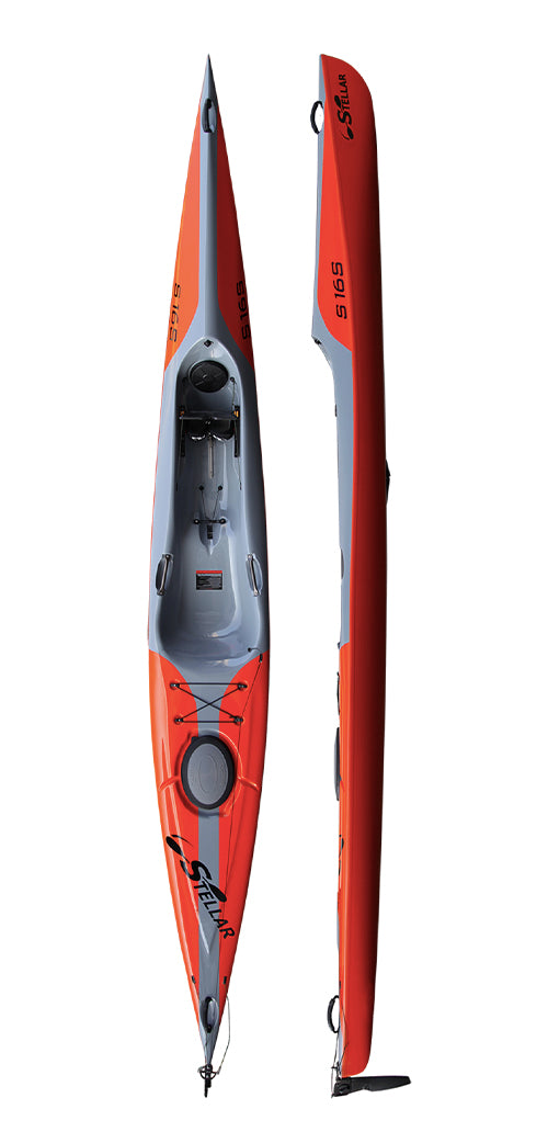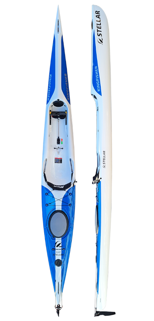 The Stellar 16' Stellar Kingfisher (S16S) is a transitional surfski. The Kingfisher is stable enough for entry level and intermediate paddlers to feel comfortable. This surfski is a great choice for fitness paddling and fast enough for racing! The open cockpit, rounded seat and 3-point footboard is very comfortable and responsive, keeping you on track to where you want to go.